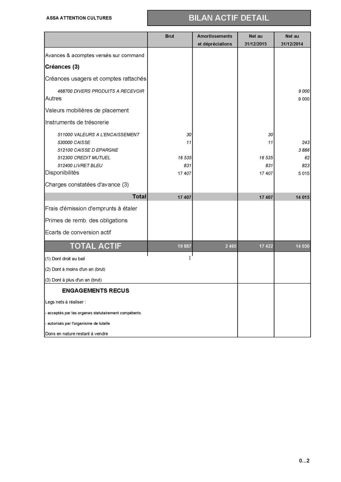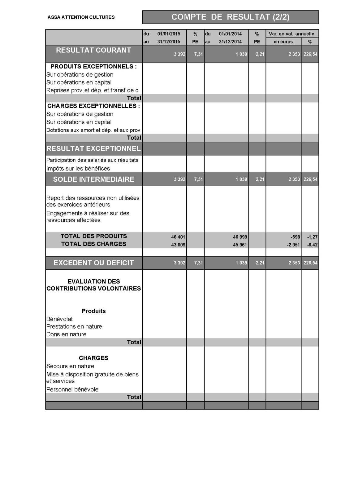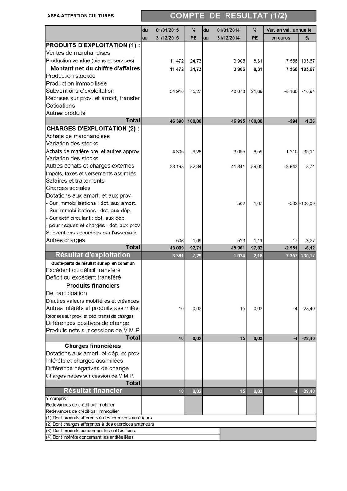 bilan financier 2015 Attention Culture 1 Février 2016, 18:38pm | Publié par Association Attention Culture Partager cet article Repost0 Vous aimerez aussi : Assemblée Générale 2017 Projet pour Convivència 2017 Assemblée Générale 2016 Activités 2015 et projets 2016 « Article précédent Article suivant » Commenter cet article Ajouter un commentaire